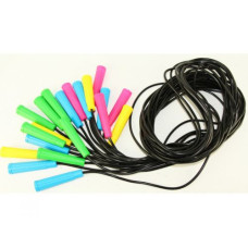 Резиновая скакалка с цветными пластиковыми ручками. Длина скакалки: 2,6 м. Разные цвета в ассортимен..
