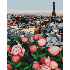 Картина по номерам Пионы с видом на Париж BS53781 40х50 см В наличии:1шт.Артикулr36609