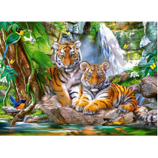 Пазлы 'Тигры у водопада', 300 элементов. Развивают логическое мышление, мелкую моторику рук, усидчив..
