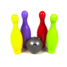 Пластиковый набор состоит включает 4 кегли и шар для боулинга с удобными отверстиями для маленьких р..