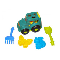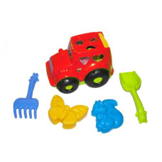 Машинка-сортер 'Автошка' с большим песочным набором: (Две пасочки, лопатка, грабельки, фигурки для с..