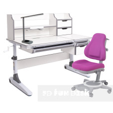 Детский комплект для школьника парта FunDesk Luce II Grey + универсальное кресло FunDesk Bravo Purpl..