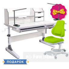 Детский комплект для школьника парта FunDesk Luce II Grey + универсальное кресло FunDesk Bravo Green..