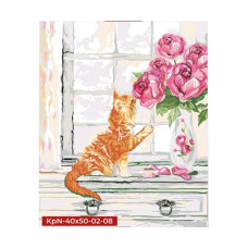 Картина по номерам Кот с цветами Danko Toys KpNe-40х50-02-08 40x50 см В наличии:1шт.Артикулr26963