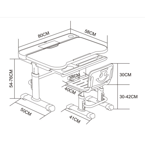 - механизм регулировки высоты позволяет легко и быстро скорректировать стол и стул, что оптимально адаптирует его под соответствующий рост ребенка. Поверхность учебного стола имеет анти-бликовое покрытие и функцию наклона до 60 ° для удобного письма, чтения и рисования;