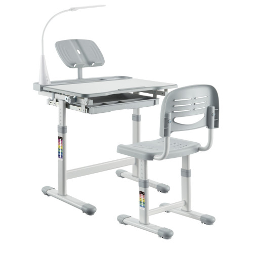 - механизм регулировки высоты позволяет легко и быстро скорректировать стол и стул, что оптимально адаптирует его под соответствующий рост ребенка. Поверхность учебного стола имеет анти-бликовое покрытие и функцию наклона до 40 ° для удобного письма, чтения и рисования;