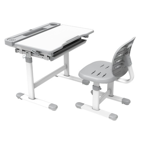 FunDesk Cura Grey - универсальный цвет парты подойдет к любому интерьеру. Столешница легко может настраивается в режим мольберта, рабочую поверхность парты наклоняется до 40° для удобного письма, чтения, рисования. Регулируемая высота парты и стула, удобный выдвижной ящик для хранения ручек и карандашей.