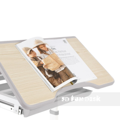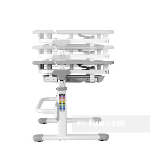 Парта и стул-трансформеры FunDesk Sorriso ― эргономичный, компактный, регулируемый по высоте, с поддержкой правильной осанки стулом, и современным дизайном комплект ученической мебели для вашего ребенка. Под столешницей расположена полка с секциями, что обеспечивает достаточно места для хранения книг и канцелярских принадлежностей. Легкую и безопасную регулировку наклона столешницы обеспечивает газлифтный механизм.
