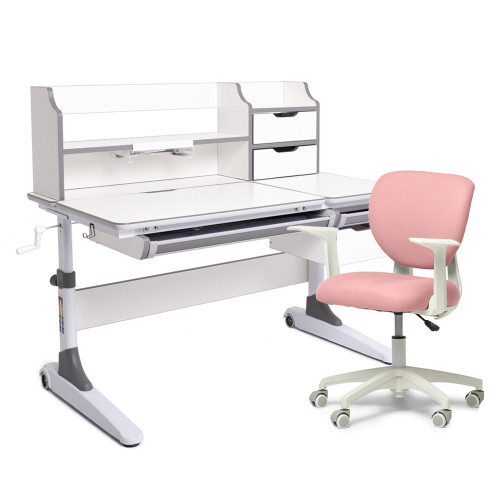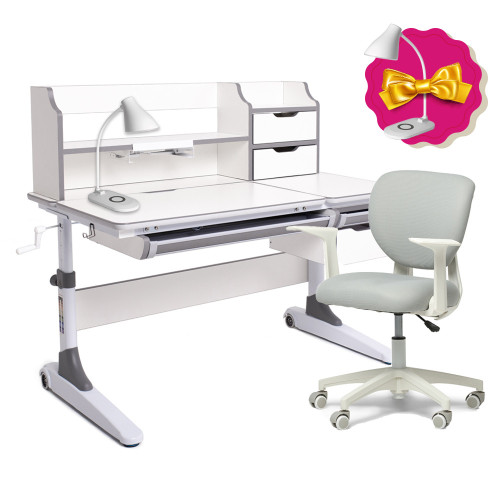 Детский комплект для школьника парта FunDesk Luce II Grey + эргономичное вращающееся кресло Fundesk Buono Grey