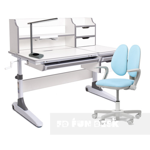Детский комплект для школьника парта FunDesk Luce II Grey + эргономичное вращающееся кресло Fundesk Mente Blue