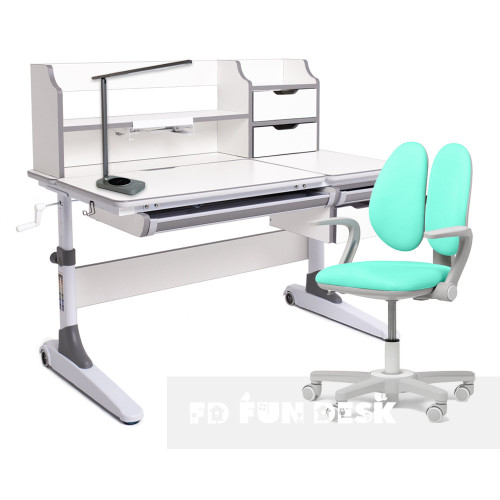 Детский комплект для школьника парта FunDesk Luce II Grey + эргономичное вращающееся кресло Fundesk Mente Mint