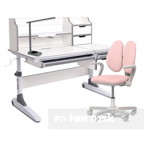 Детский комплект для школьника парта FunDesk Luce II Grey + эргономичное вращающееся креслоFundesk Mente Pink