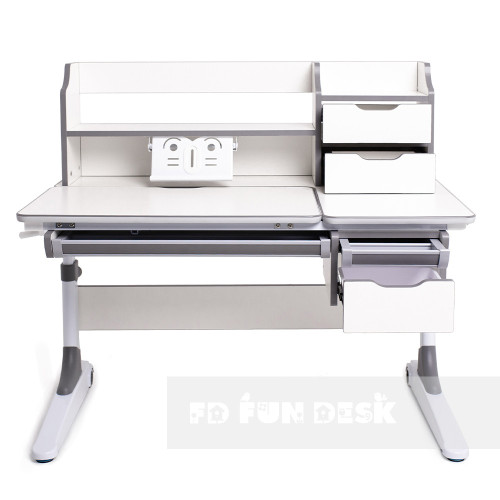 Особенностью данной модели является надстройка со встроенной, выдвижной подставкой для книги, двумя дополнительным ящиками и широкой полкой, что идеально подходят для хранения всех необходимых книг и тетрадей.
