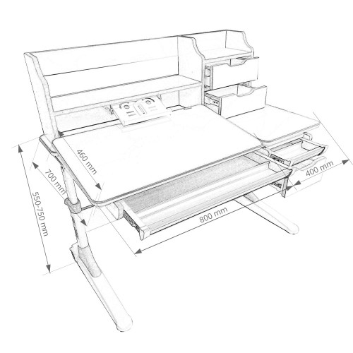 Особенностью данной модели является надстройка со встроенной, выдвижной подставкой для книги, двумя дополнительным ящиками и широкой полкой, что идеально подходят для хранения всех необходимых книг и тетрадей.