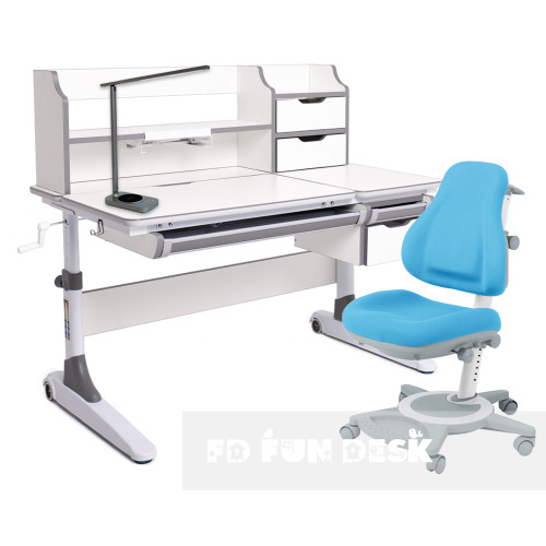 Детский комплект для школьника парта FunDesk Luce II Grey + универсальное кресло FunDesk Bravo Blue