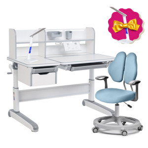 Детский комплект стол-трансформер FunDesk Libro Grey + кресло для дома FunDesk Vetta II Blue