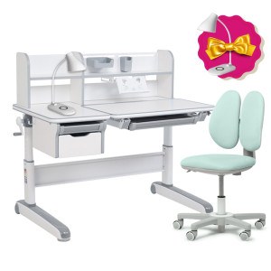 Детский комплект стол-трансформер FunDesk Libro Grey + кресло Fundesk Mente Dark Green