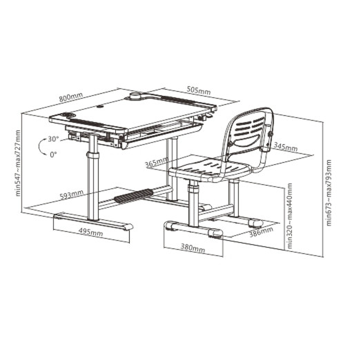 Рабочая столешница с возможностью наклона: обеспечивает лучший угол для письма, чтения и рисования;