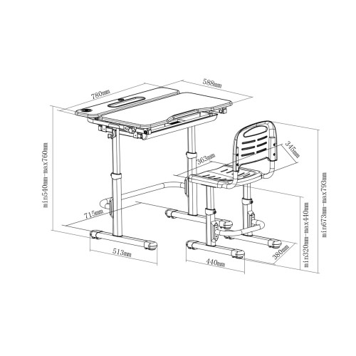Столешница размером 795x620mm, позволит ребенку правильно распределить рабочее пространство, а выдвижной ящик-органайзер позволяет держать все под рукой ( детские тетради, материалы для творчества, канцелярию)