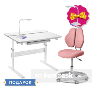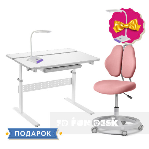 Комплект для девочки парта Fundesk Colore Grey + эргономичное кресло Fundesk Pratico II Pink