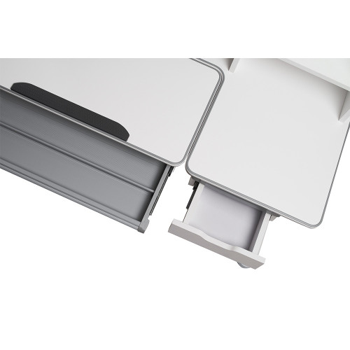 Столешница имеет две зоны, наклоненную и статичную. Благодаря возможности наклона столешницы от 0° до 50° парта Fiore идеально подходит для любого вида обучения (письмо, чтение, рисование...). Также стоит отметить отметить важность статичной части столешницы, на которой можно разместить лампу и ноутбук для удаленного обучения.