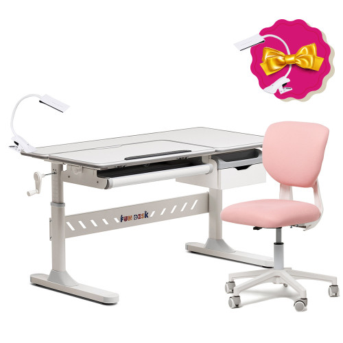 Комплект для подростка парта-трансформер Fundesk Fiore Grey + эргономичное кресло Fundesk Buono Pink