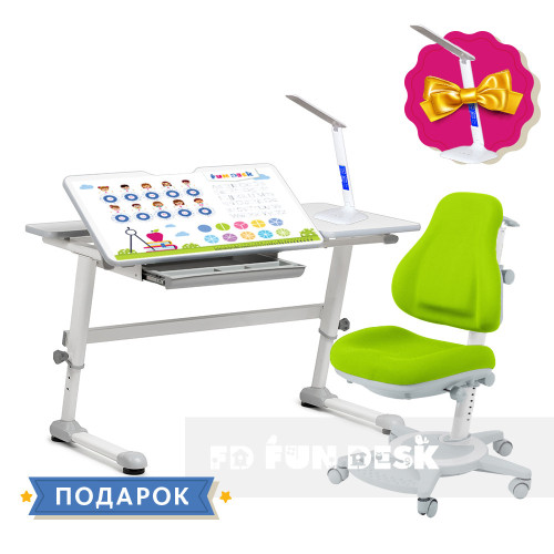 Комплект для девочки парта-трансформер FunDesk Trovare Grey + подростковое кресло FunDesk Bravo Green