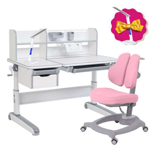 Комплект стол-трансформер Libro Grey+эргономичное кресло Diverso Pink FunDesk