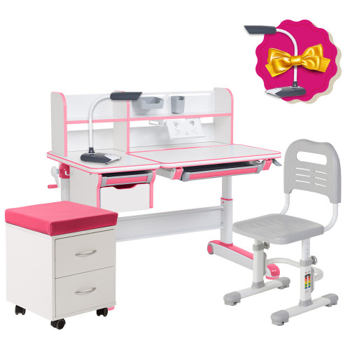 Комплект для девочки стол-трансформер Libro Pink + тул FunDesk FunDesk SST3L Grey + тумбочка FunDesk SS15W