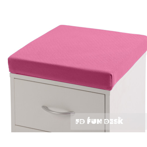 Уникальный дизайн тумбы разработан для максимального увеличения пространства хранения вещей и одновременно может использоваться как пуфик. За счет наличия мягкого сидения обеспечивается удобный и комфортный отдых ребенка. Специальная конструкция хорошо подходит для любого пола и позволяет легко перемещать шкаф.