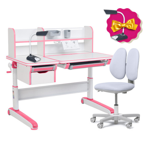 Комплект для девочки стол-трансформер Libro Pink + вращающееся кресло Fundesk Mente Grey