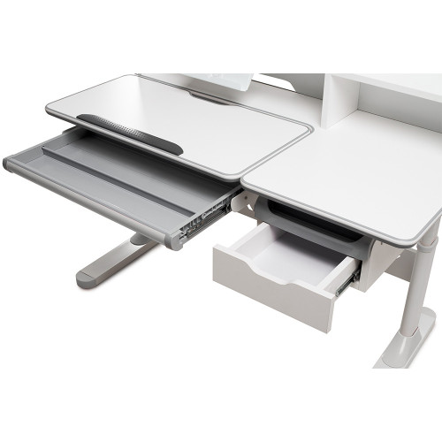 Вместительная надстройка в совокупности с тремя выдвижными ящиками, позволяет хранить все принадлежности для обучения в одном месте. Два из трех ящиков имеют секционное разделение, для комфортного хранения карандашей, ручек и прочей мелкой канцелярии.
