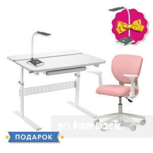 Комплект для школьника парта-трансформер Fundesk Colore Grey + эргономичное кресло Fundesk Buono Pink