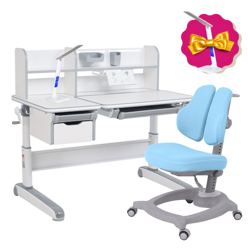 Комплект для школьника стол-трансформер Libro Grey + эргономичное кресло Diverso Blue FunDesk