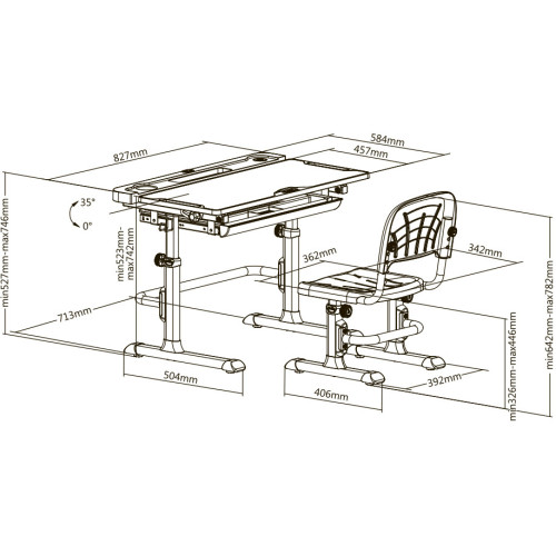 - Размер стола (ШхГхВ): 830 x 505 x 526 - 746 мм