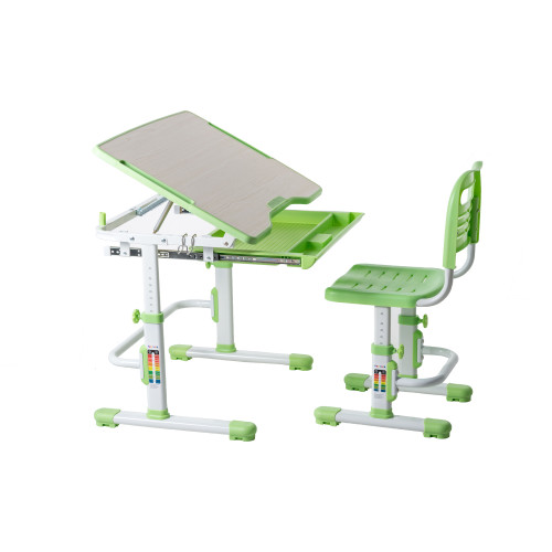 Комплект детской ученической мебели Vivo Green предназначен для обеспечения более комфортной среды обучения.Стол и стул могут быть легко отрегулированы по высоте, что позволяет оптимально адаптировать его под соответствующий рост ребенка. Поверхность учебного стола можно наклонять до 60° для удобного письма, чтения и рисования.