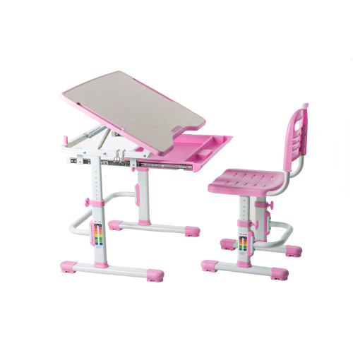 Комплект детской ученической мебели Vivo Pink предназначен для обеспечения более комфортной среды обучения.Стол и стул могут быть легко отрегулированы по высоте, что позволяет оптимально адаптировать его под соответствующий рост ребенка. Поверхность учебного стола можно наклонять до 60° для удобного письма, чтения и рисования.