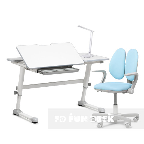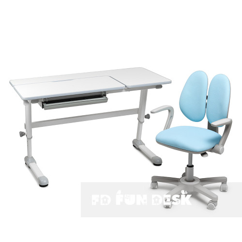 Комплект парта-трансформер FunDesk Trovare Grey + эргономичное вращающееся кресло Fundesk Mente Blue