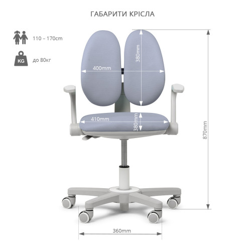 Кресло Fundesk Mente имеет ортопедическую спинку, которая состоит из двух половинок, что позволяет поддерживать спинку сидящего ребенка, в любом положении поворота корпуса.