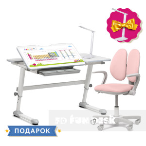 Комплект парта-трансформер FunDesk Trovare Grey + эргономичное вращающееся кресло Fundesk Mente Pink