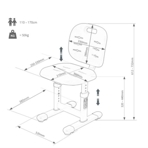 Удобный и современный стул-трансформер. Используя специальную шкалу с указанием роста ребёнка, вы легко и быстро сможете привести стульчик в необходимое положение для ребёнка от 2 до 8 лет.