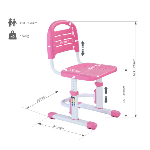 Используя специальную шкалу с указанием роста ребёнка, вы легко и быстро сможете привести стульчик в необходимое положение для ребёнка от 3 до 14 лет.