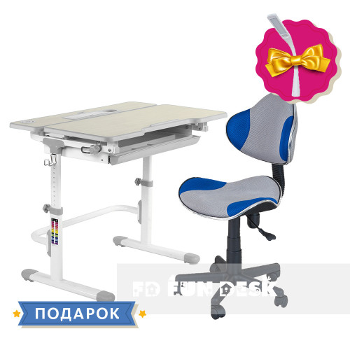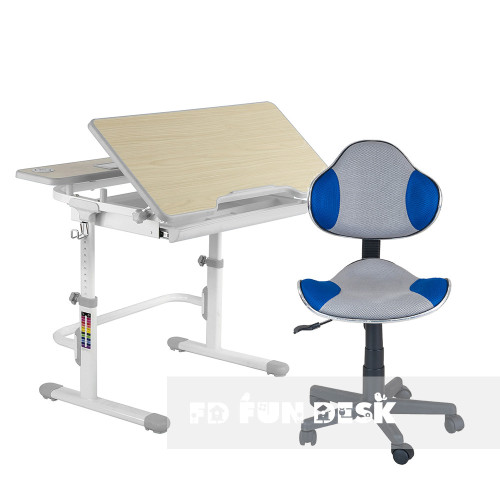 Комплект растущая парта для дома FunDesk Lavoro L Grey+детское кресло FunDesk LST3 Blue-Grey