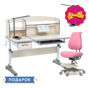 Комплект растущая парта для школьников Cubby Ammi Grey + ортопедическое кресло Cubby Paeonia Pink