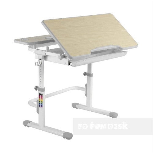 Модель Lavoro L – эргономичная, компактная, регулируемая по высоте парта для школьника. Поверхность учебного стола можно наклонять до 50 ° для удобного письма, чтения и рисования. Наличие специальной защиты от защемления пальцев позволяет уберечь руки вашего ребенка от повреждений. Под столешницей расположена выдвижная полка с несколькими отделениями, что обеспечивает достаточно места для хранения книг и канцелярских принадлежностей.