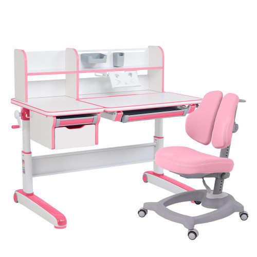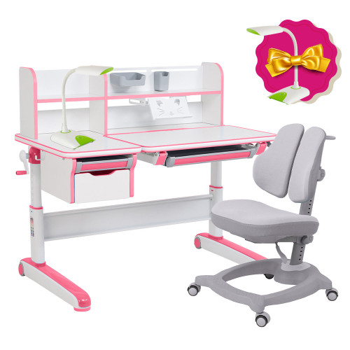 Комплект стол-трансформер Libro Pink + эргономичное кресло Diverso Grey FunDesk