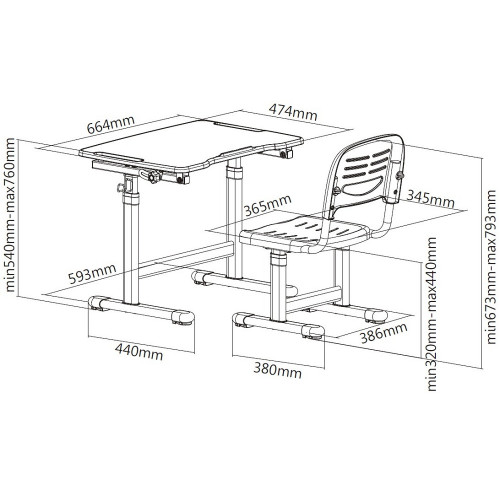 | Габариты стола (ШхГхВ): | 664x474x540-760 мм |