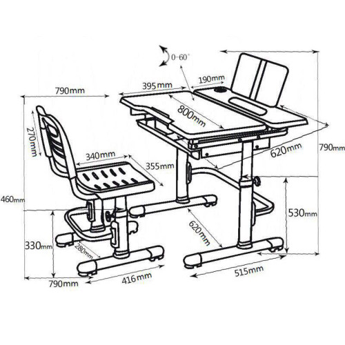 Размер стола (ШхГхВ): 800 x 620 x 530 - 790 мм
