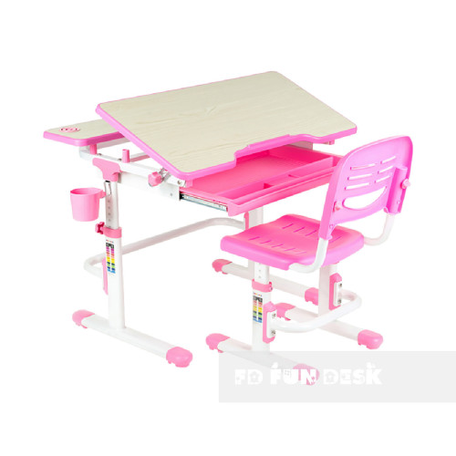 Растущая парта + стульчик для школьников Fundesk Lavoro Pink
