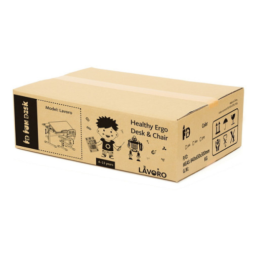 Комплект Lavoro – эргономичный, компактный, регулируемый по высоте комплект ученической мебели. Поверхность учебного стола можно наклонять до 50 ° для удобного письма, чтения и рисования. Наличие специальной защиты от защемления пальцев позволяет уберечь руки вашего ребенка от повреждений. Под столешницей расположена выдвижная полка с несколькими отделениями, что обеспечивает достаточно места для хранения книг и канцелярских принадлежностей. Стул имеет перфорацию для обеспечения циркуляции воздуха к телу ребенка, что особенно актуально в летнее время. Наличие многоступенчатого механизма регулировки высоты позволяет комплекту «расти» вместе с вашим ребенком, способствует формированию правильной осанки благодаря ортопедическим опциям.